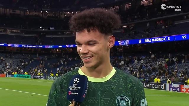 曼城在歐冠聯(lián)賽階段第6輪客場(chǎng)2-1逆轉(zhuǎn)了皇馬。賽后,為球隊(duì)攻入一球的尼科-奧賴?yán)邮芰薚NT體育的采訪。